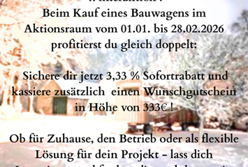 Am 14.03. laden wir Sie herzlich ein, unsere Bauwagenmanufaktur von 11:00 bis 16:00 Uhr zu besuchen. Lernen Sie unsere individuell gefertigten Bauwagen kennen und entdecken Sie unterschiedliche Modelle, Materialien und Ausstattungsmöglichkeiten. Kommen Sie vorbei, lassen Weiterlesen…