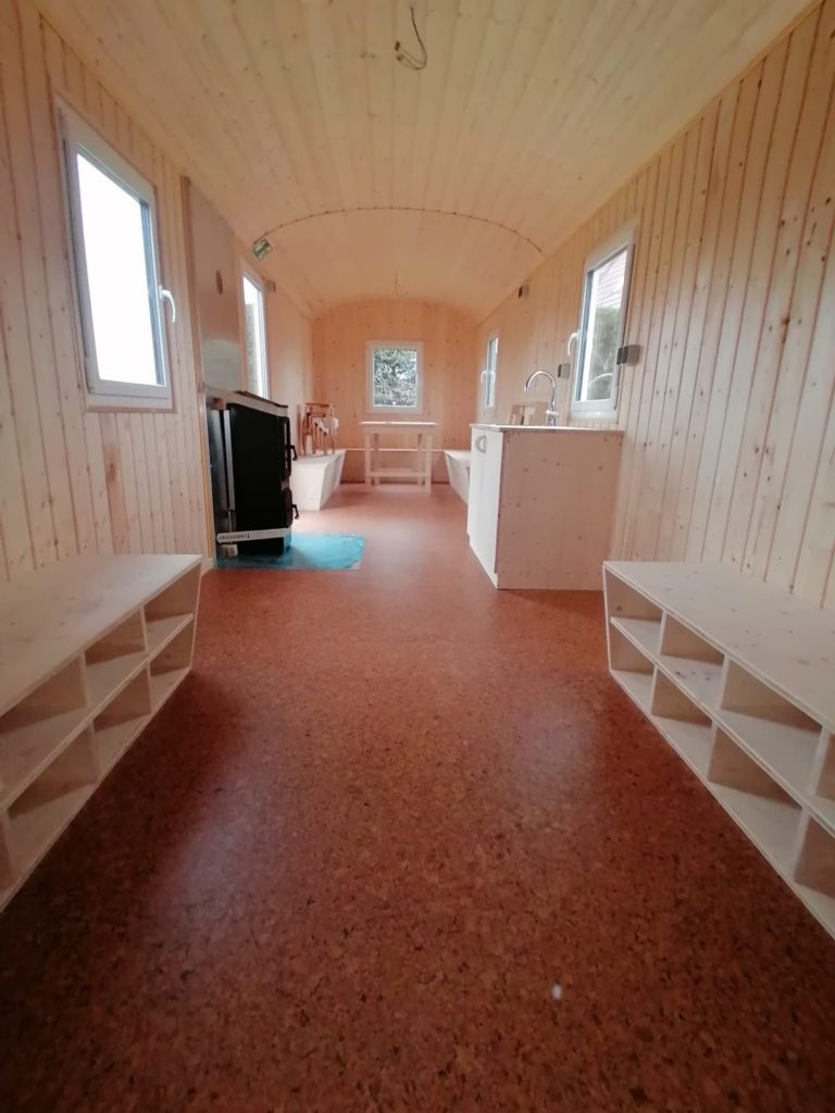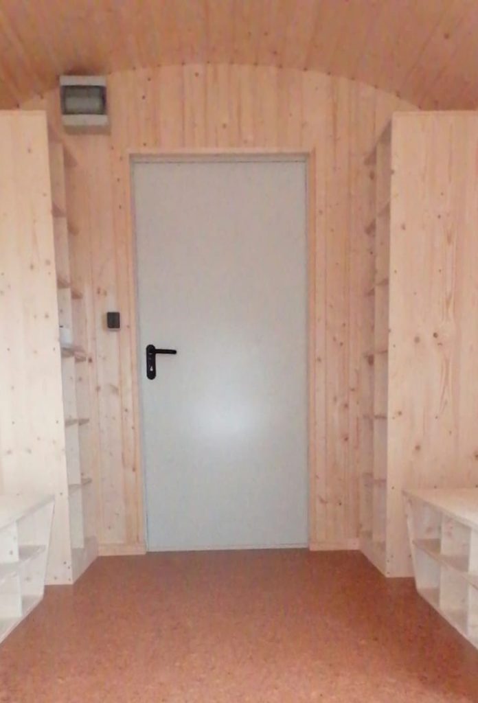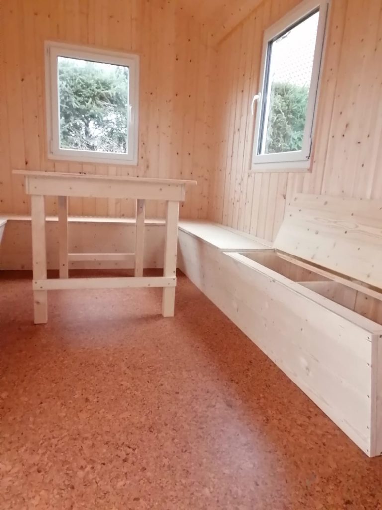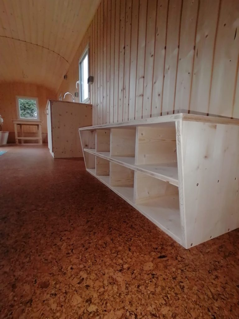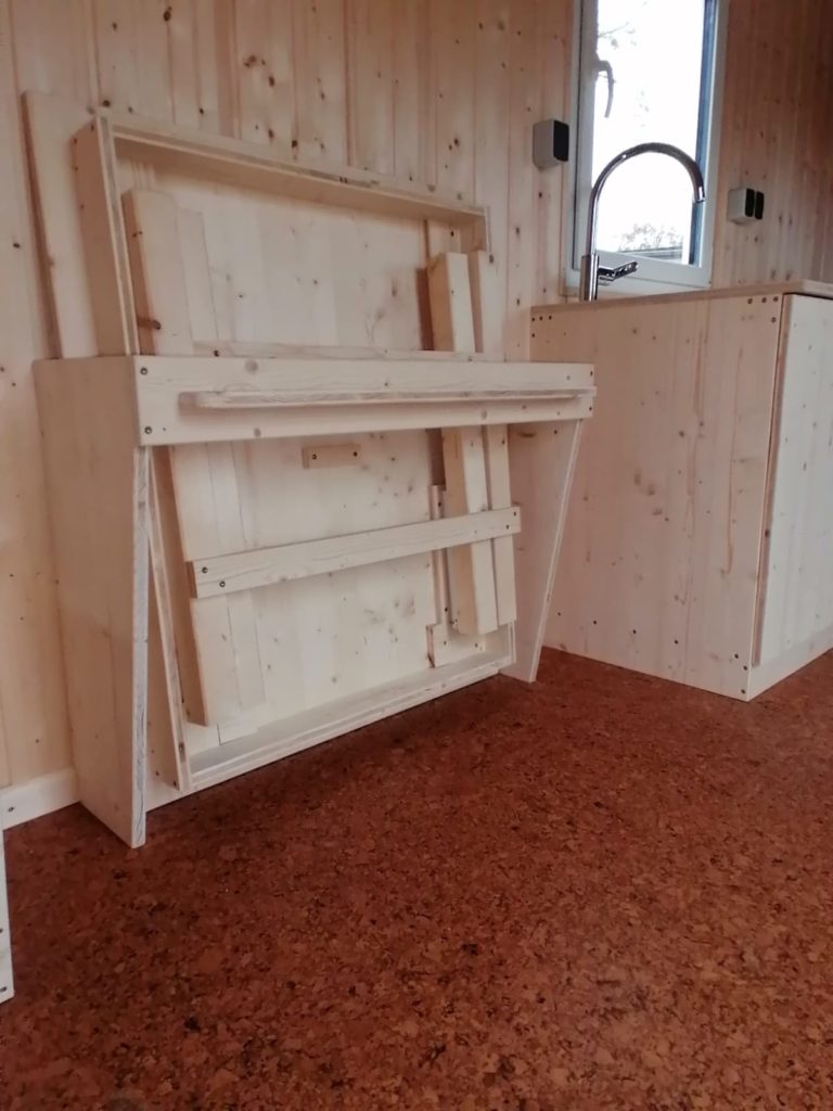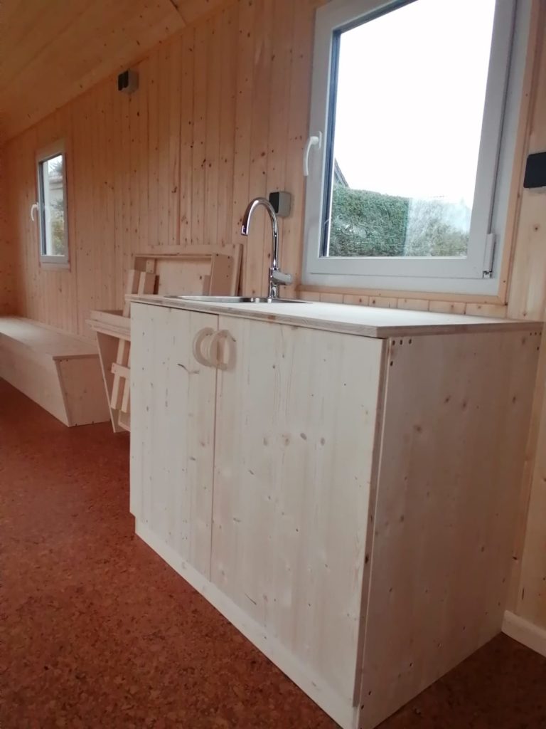 - Außenhülle aus Lärchenholz inkl. Innenausbau mit Holzpaneelen Fichte Natur verkleidet
