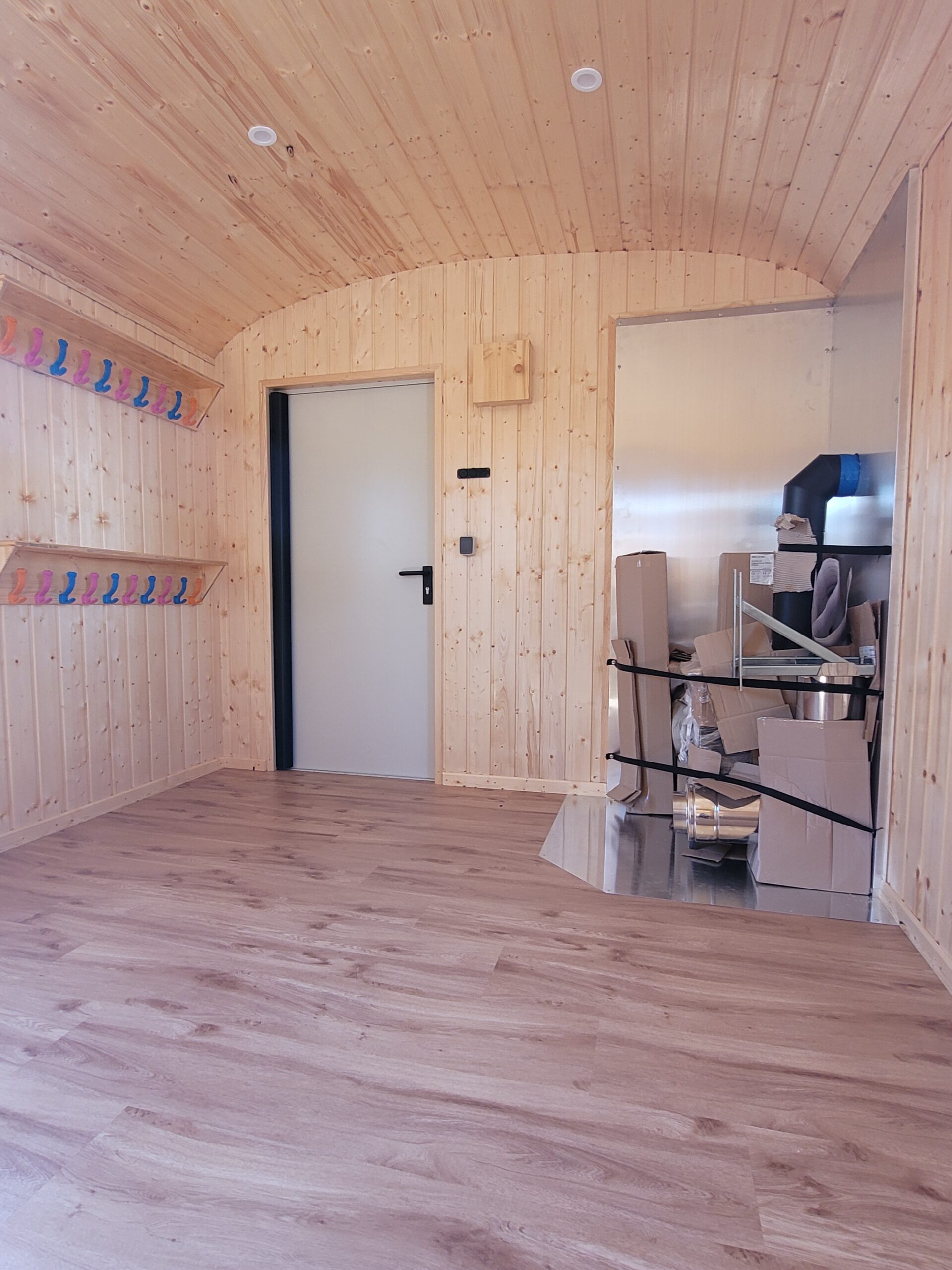 - Bauwagen 13×3 m aus Lärchenholz inkl. Innenausbau