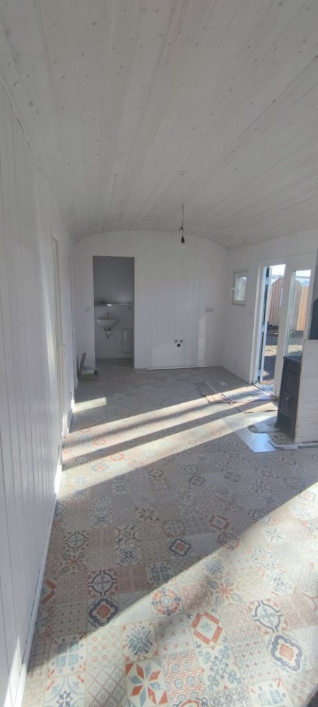 - Außenhülle : 8 x 3m aus Lärchenholz inkl. Innenausbau (Stülpschalung aufpreispflichtig)
