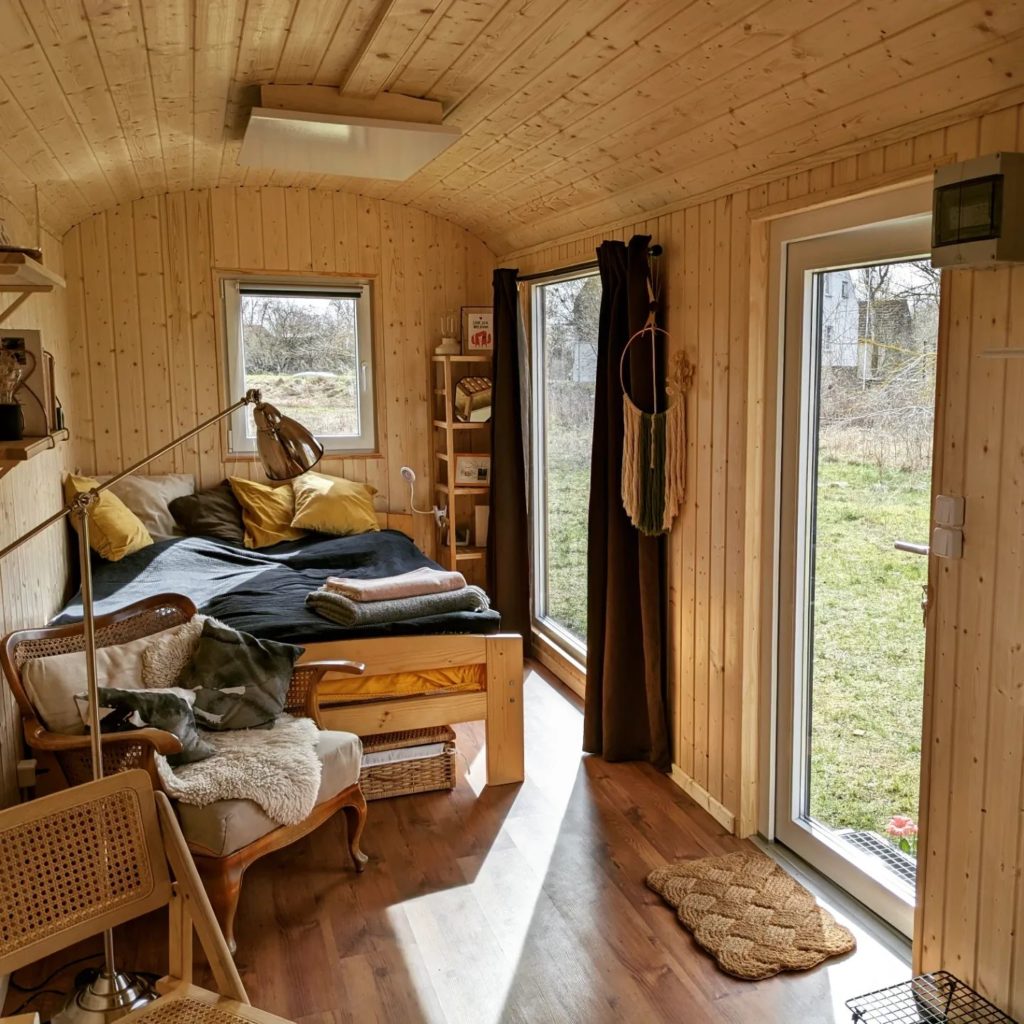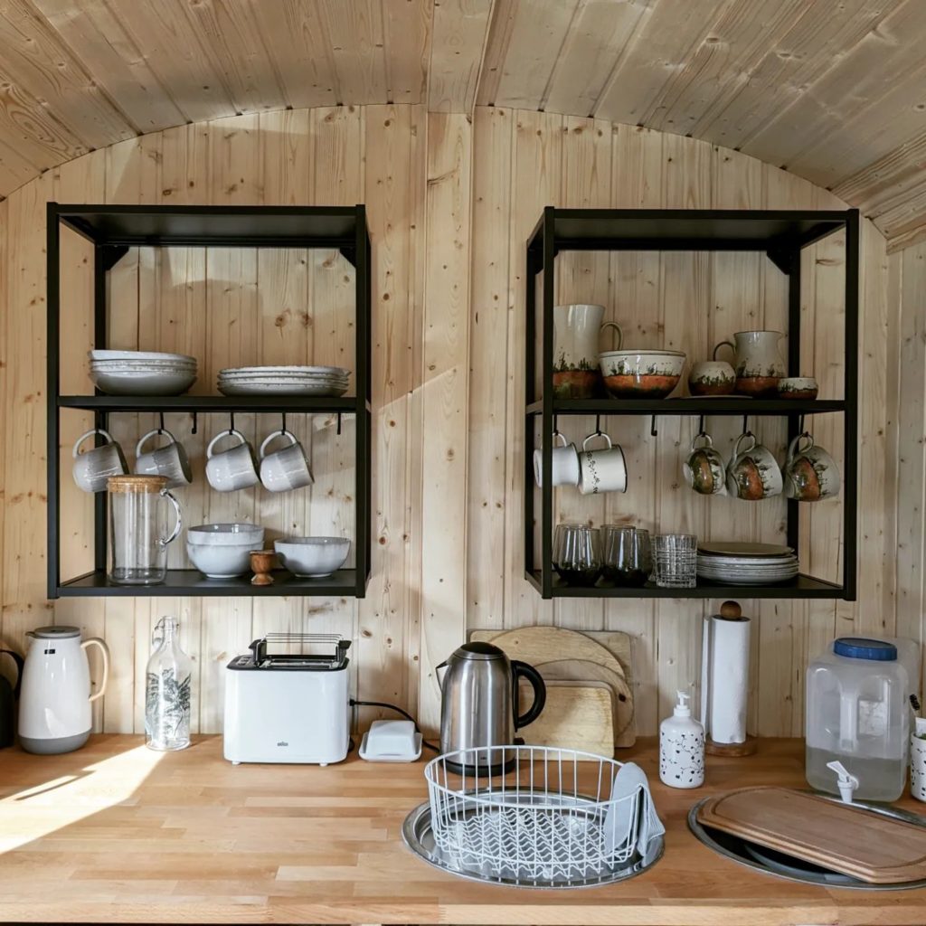 Der 2025 neu gebaute Wagen verfügt über einen Wohn- /Schlafbereich, ein separates Bad sowie eine voll ausgestatteter Küche. Der kleine Kamin lädt bei jedem Wetter zu gemütlichen Stunden ein, während ihr durch das Panoramafenster den Blick in die Ferne schweifen lasst.